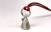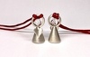 Silberner Engel, mattiert, mit Bergkristall-Köpfchen an rotem Satinband. Größe ca. 34 mm.